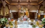 As part of celebrations at the Mandir, an annakut (offering of food for thanksgiving) was also decoratively assembled before the deities in the shrines.