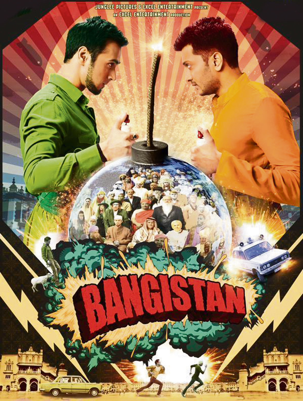 A comedy satire film directed by Karan Anshuman and produced by Farhan Akhtar and Ritesh Sidhwani, Bangistan features Riteish Deshmukh, Pulkit Samrat and Chandan Roy Sanyal in the lead. Bollywood actress Jacqueline Fernandes also appears in a small cameo. Music is by Ram Sampath.