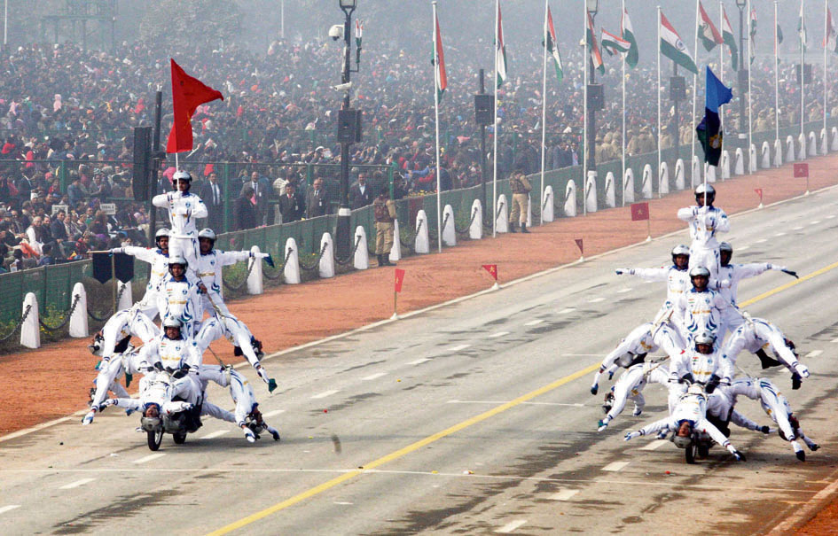 There was a scintillating display of folk and classical dances and performances by school children from Delhi and other parts of India. One of the highlights of the two-hour event at Rajpath was the stunts by daredevils belonging to the Army Signal Corps as they made various formations on motorbikes.