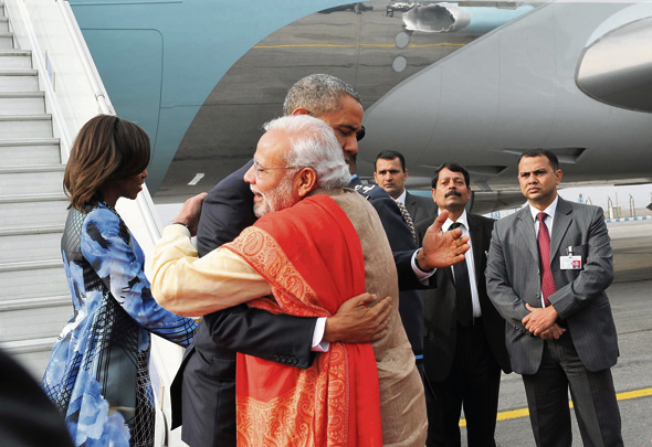 India showed its rich cultural diversity and military might as well as achievements in diverse fields at the 66th Republic Day parade in Delhi which had US President Barack Obama as the chief guest for the first time. Obama spent more than two hours on an outdoor viewing platform during the show. Obama nodded in approval as tanks and rocket launchers rolled down the parade route and helicopters ferrying Indian flags flew overhead. Obama was seated next to Indian Prime Minister Narendra Modi, donning a multicoloured 'bandhej safa' (turban), as the two leaders chatted and enjoyed the annual spectacle. A smiling US President was seen nodding in appreciation on several occasions.