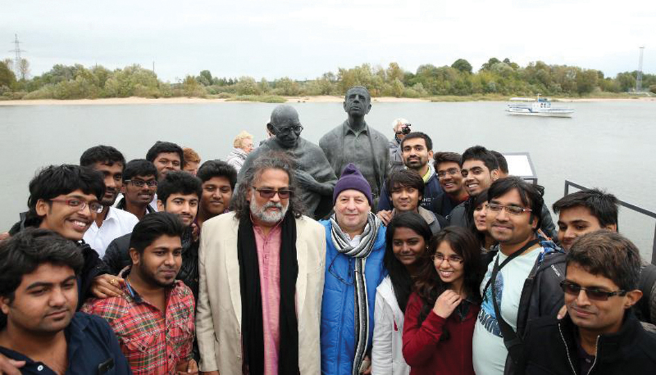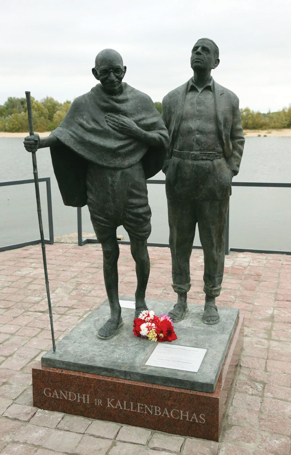 Also present was the Indian independence leader's great grandson Tushar Gandhi and Kallenbach's family members, along with a large group of Indian students studying in the country. The composition of two life-size bronze statues was designed and produced by renowned Lithuanian architect Roman Kvintas. The initiative was taken by the government, London-based Yusuf and Farida Hamied Foundation, a charity trust run by Yusuf Hamied, owner of one of India's largest pharmaceutical companies, Cipla, and the country's Goodwill Foundation.