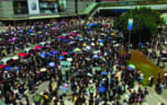 In a tweet, Wong called for police to drop charges against people arrested in the recent protests. Some protesters also moved to Hong Kong's Revenue Tower. The Labour Department said several services based in the building would be suspended. As demonstrators remained camped outside government buildings, some sprayed water into the crowd in an attempt to keep cool while others sang songs.