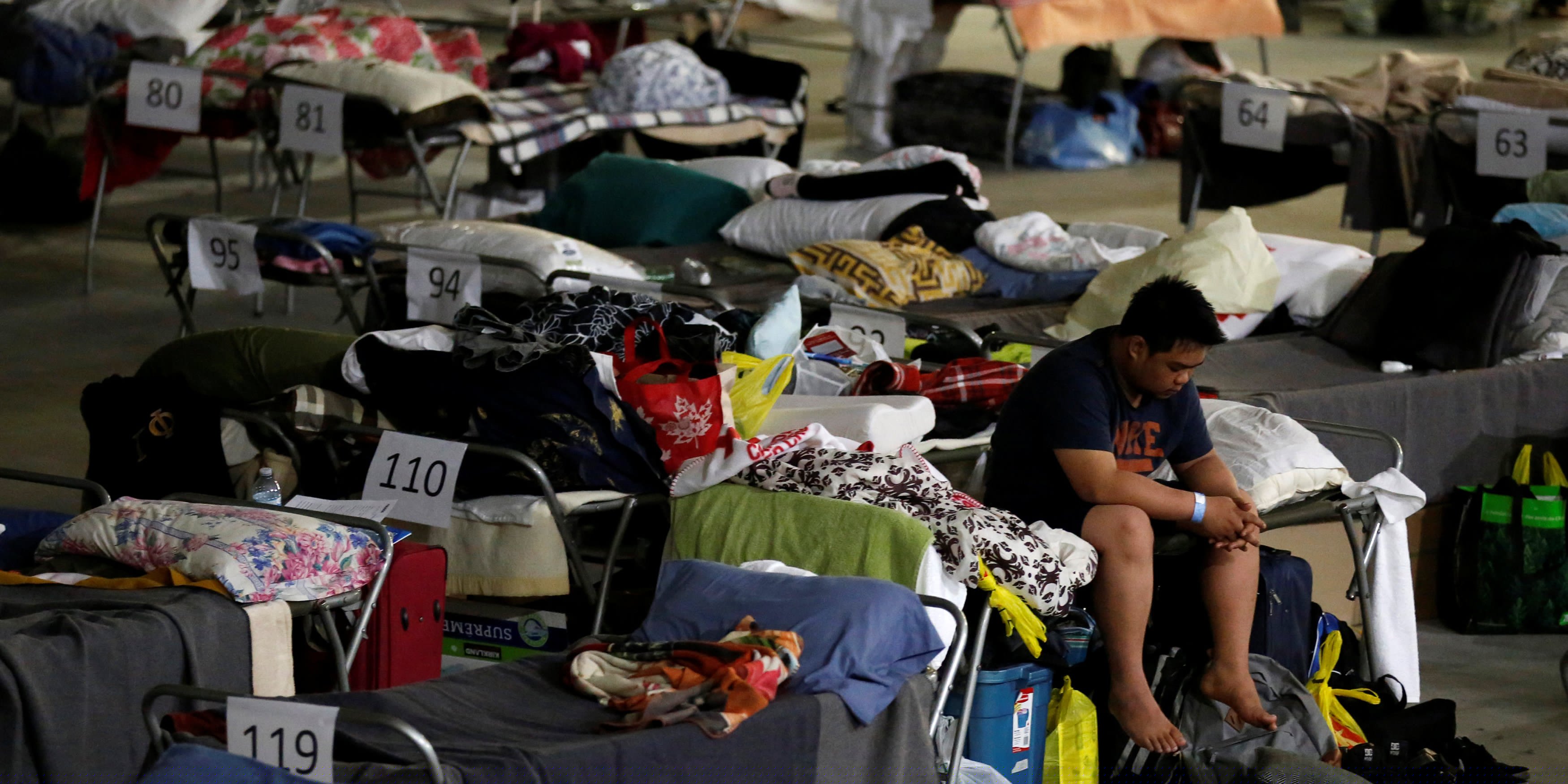 Most of the evacuees headed south by car on Alberta Highway 63, with many temporarily stranded on the roadside as they ran out of gasoline. Other residents who initially sought shelter in oil camps and settlements north of the city were stuck in overcrowded conditions. Helicopters hovered overhead watching for flames, and police set up emergency fuel stations along the highway to keep the line of cars moving. They headed toward south of Fort McMurray in towns including Lac La Biche, 180 miles (290 km) away, and Edmonton.