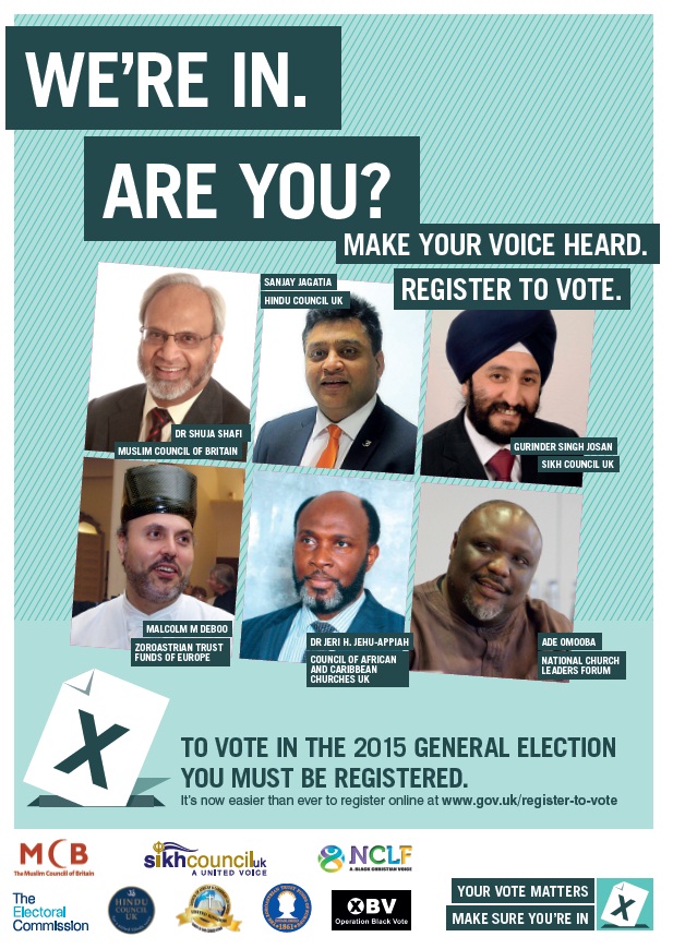 Jenny Watson, Chair of the Electoral Commission, said: “It’s good to see so many faith organisations stressing the importance of registering to vote. We know that Britain’s BME communities are under-represented on the electoral register, and you can be part of changing that by taking the time to register to vote.”