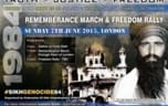 Thousands of British Sikhs marched through Central London on Sunday 7 June to mark the 31st anniversary of Operation Blue Star in 1984- when the Indian army stormed through the Golden temple in Amritsar, to eliminate militants reportedly hiding within the temple premises. The march that started from Hyde Park to Waterloo Place was led by 5 Sikhs in ceremonial dress and included floats on the themes of 'truth', 'freedom' and 'justice'. Families from all across Britain travelled all the way to Hyde park in London, to mark their protest and demand justice through an independent public inquiry.