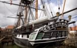 One of the two surviving British frigates of Her era, HMS Trincomalee is a Royal Navy frigate built shortly after the end of the Napoleonic Wars. She is currently restored as a museum ship in Hartlepool, England. The ship was built in Bombay, now Mumbai, due to severe oak shortages in Britain as a result of shipbuilding drives for the Wars. It was named Trincomalee after the 1782 Battle of Trincomalee off the Ceylon, in Sri Lanka.