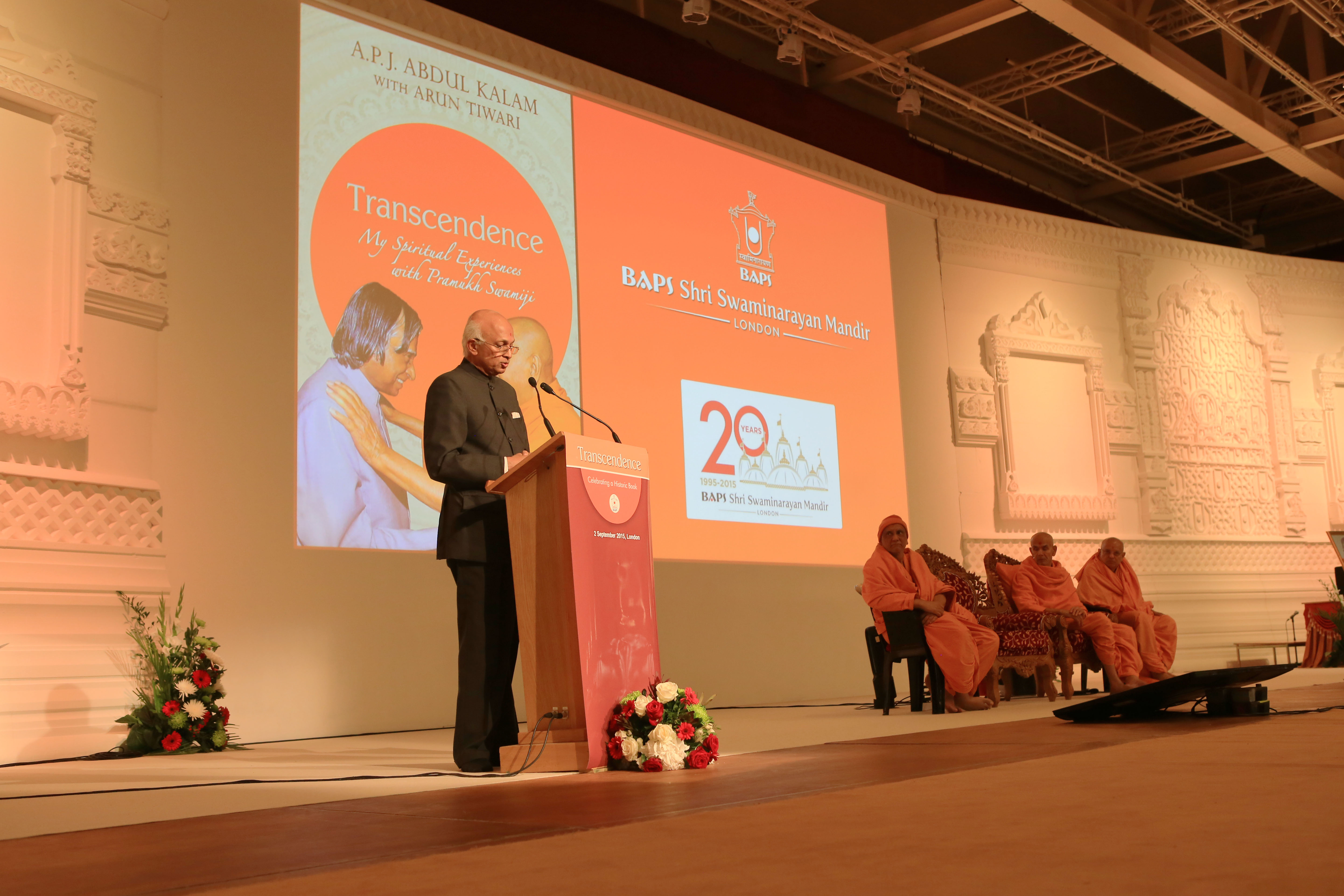 Launching the late Dr APJ Abdul Kalam's last book the BAPS Swaminarayan Sanstha (BAPS), a worldwide community-based spiritual organisation, hosted a special memorial event at their temple in Neasden in his honour. This event was also one of many in the year long celebration that marks the Mandir's 20th anniversary. The BAPS goal is to attain peace through certain ideals and joining together communities. The organisation is recognised internationally for its humanitarian services and is associated with the UN. In the UK, BAPS Swaminarayan Sanstha is one of the largest Hindu organisations within the Indian community.