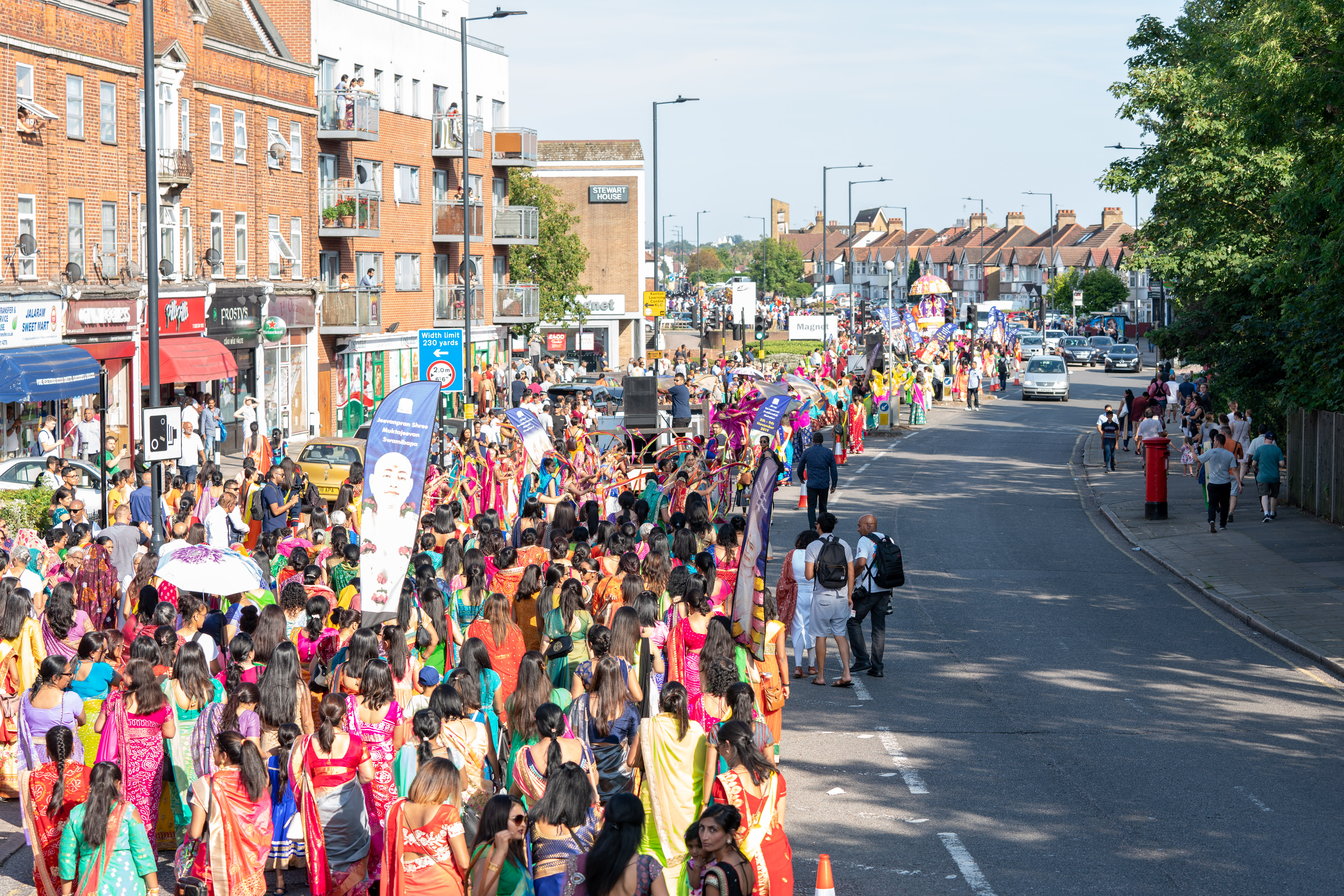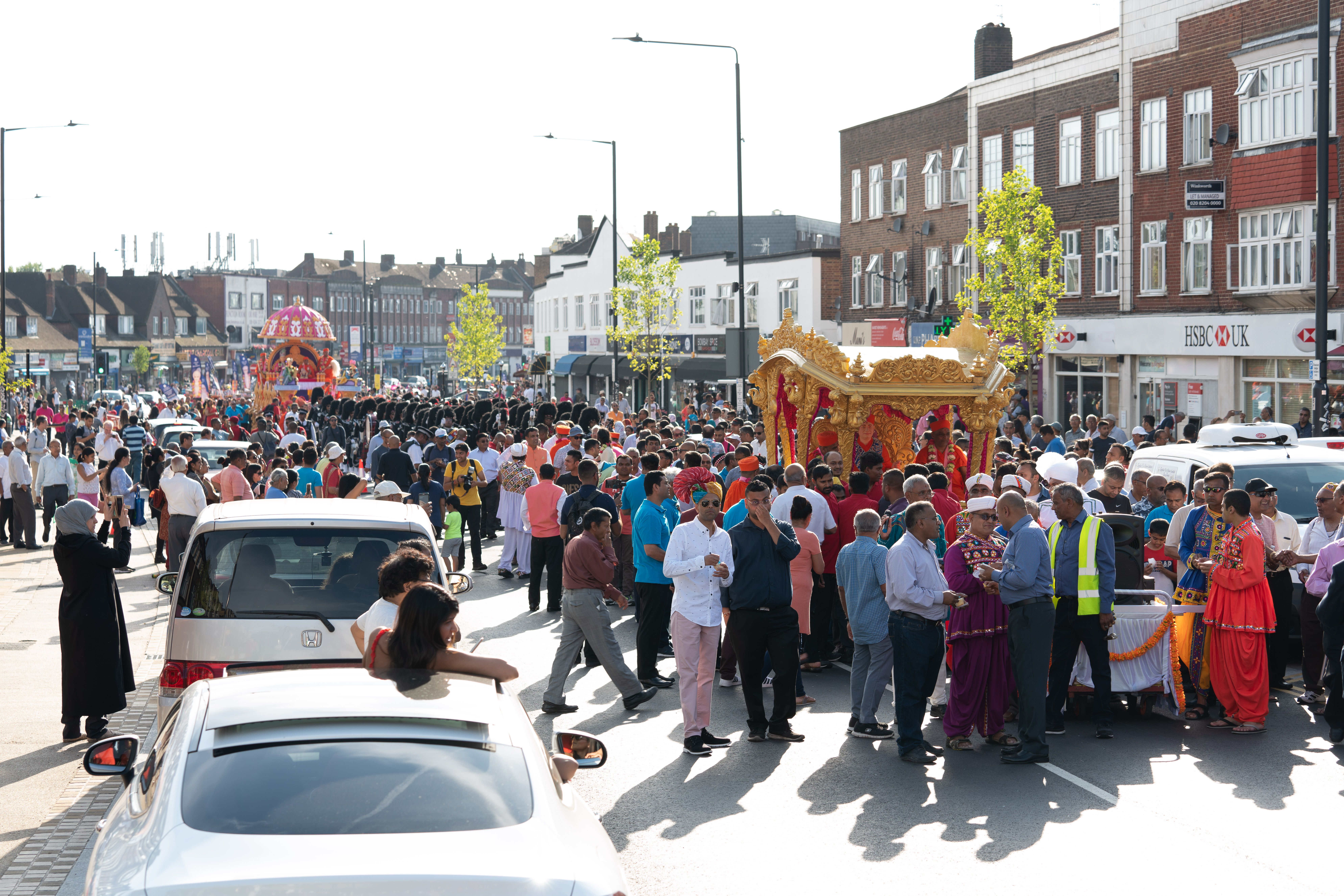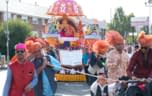 Celebrations kicked off on Saturday 24 August great colour, music and fervour, as a magnificent Grand Parade made its way through the streets of Kingsbury. The Parade started at St Lukes Hospice in nearby Kenton, which is one of several charity partners that the Mandir supports. To date, the Mandir has raised a staggering £60,000 for the hospice, included £10,000 raised this year for which a cheque was presented to the Hospice by Acharya Swamishree Maharaj.