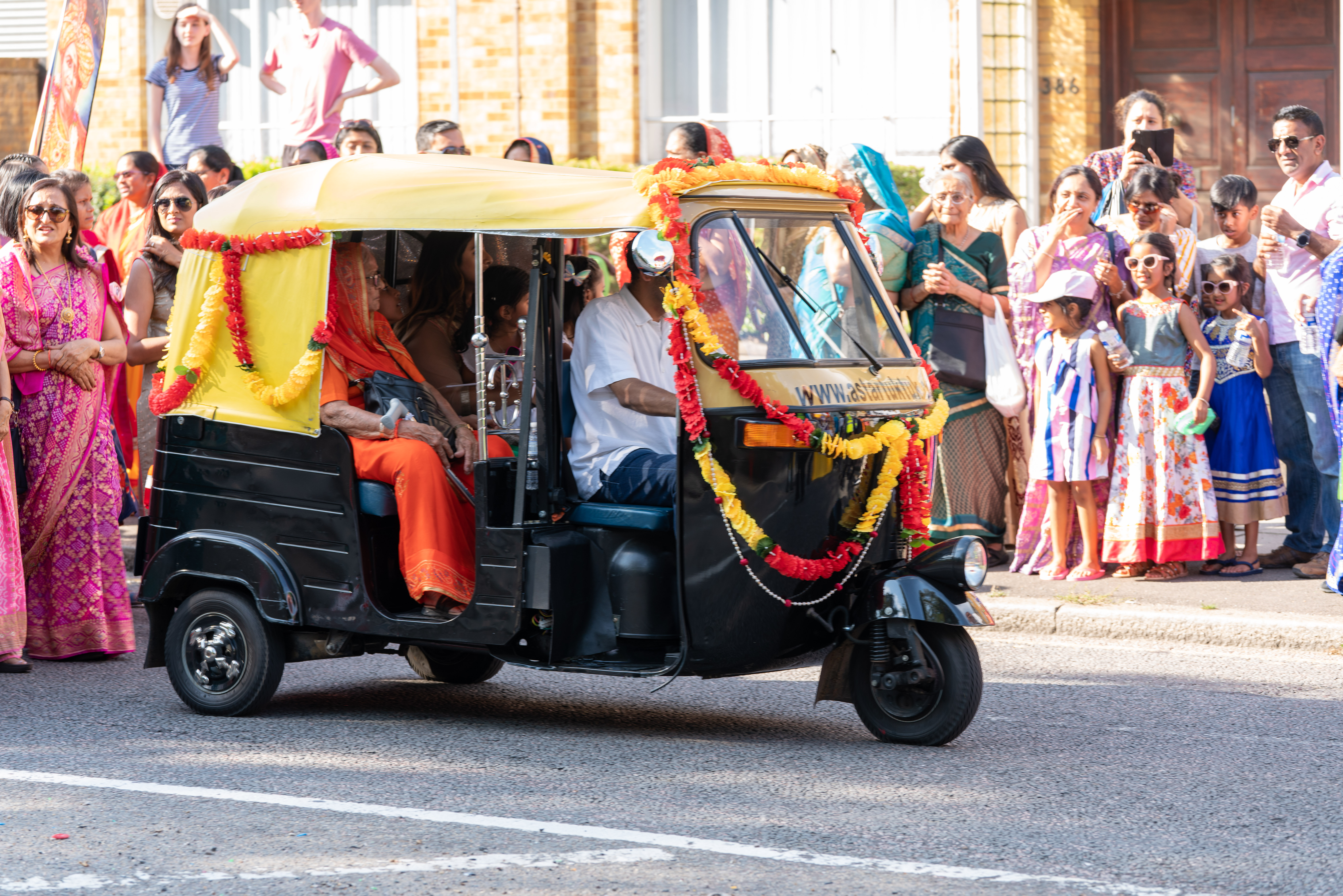 Tens of thousands of onlookers, mostly families with young children, lined the three mile to see the Parade, which saw dancers, floats, musicians and more, all led by the Mandir’s prestigious Shree Muktajeevan Swamibapa Pipe Band. Acharya Swamishree Maharaj presided on a resplendent chariot throughout the parade.
