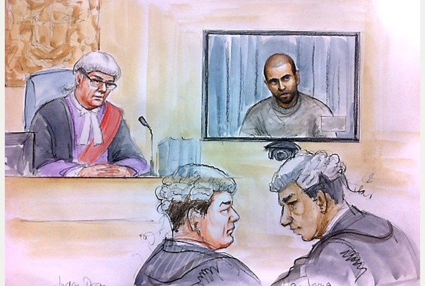 The defendant, wearing a grey tracksuit, appeared via a live video link from the prison where he is currently being detained.