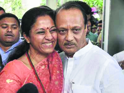 A NCP MP Supriya Sule with her Deputy CM brother Ajit Pawar
