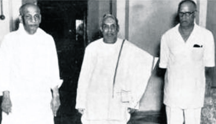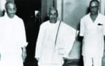 Sardar Patel and V. P. Menon with Maharaja of Kochin