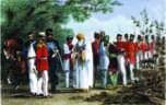 Zafar was exiled to Rangoon (Burma, called Myanmar now) by the British for his involvement in the Indian Rebellion of 1857, when sepoy (soldiers) regiments had seized Delhi, killing at least 52 Europeans. Zafar’s youngest wife, Zeenat Mahal, his previous wives and some remaining members of the family, had accompanied him to Burma on October 7, 1858 in bullock carts escorted by the forces of Lieutenant Ommaney. The 1857 uprising had started from Meerut and Mutineers entered Delhi from Bridge of Boats on Yamuna and took control of Delhi after proclaiming Zafar as their King and vowed to restore the court of Great Mughals. This followed by an intense fight between the ruling British and mutineers, which resulted in mass devastation of Delhi and eventual collapse of first Indian struggle of freedom of 1857.