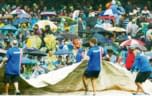 The start of the match was delayed by 40 minutes due to drizzle since morning and there was first rain interruption when India were six for no loss in 2.4 overs. Play resumed with India losing the struggling Shikhar Dhawan for eight in the seventh over and then Ambati Rayudu for 23 in the 13th over.