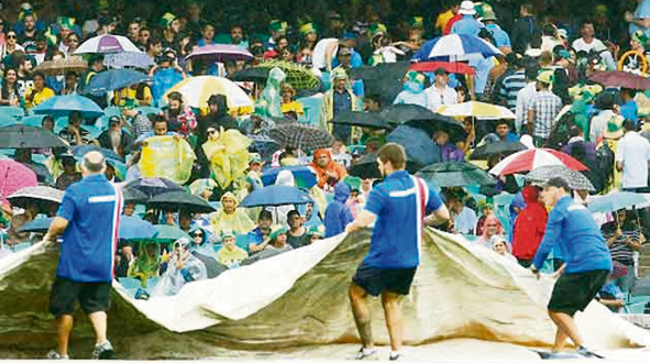 Ajinkya Rahane was batting on 28 while Virat Kohli was giving him company on three when rain stopped play. India will have to win their next match against England if they want to qualify for the finals.