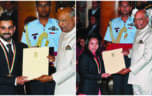 India's cricket captain Virat Kohli and weightlifter Mirabai Chanu were conferred with the Rajiv Gandhi Khel Ratna Award by President Ram Nath Kovind at the Rashtrapati Bhavan. The annual National Sports Awards were bestowed on the best athletes that the country has seen in the past one year. Kohli is the third cricketer to be awarded the Khel Ratna after Sachin Tendulkar (1997) and MS Dhoni (2007). BCCI had recommended Kohli for the past three years but in 2016 he missed out owing to the Olympics where the award went to wrestler Sakshi Malik, shuttler PV Sindhu and gymnast Deepa Karmakar. Last year it went to hockey player Sardar Singh and para-athlete Devendra Jhajharia.
