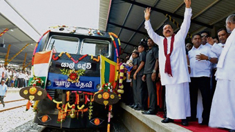 Rajapakse boarded a special train from the town of Palai on the southern end of the Jaffna peninsula and travelled to the cultural capital of Sri Lanka's ethnic minority Tamils. His train stopped at three stations rebuilt as part of the reconstruction of 250-km of track across the former war zone, both in the Jaffna peninsula and the northern mainland.